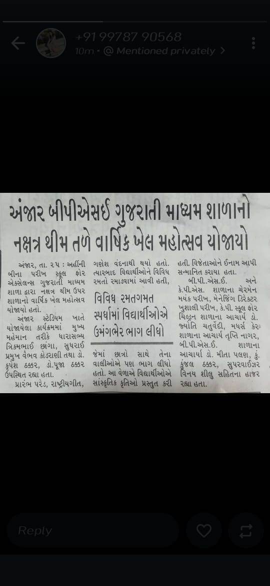 અંજાર શહેરની શાળાનાં છાત્રે ૧૦૦ મીટરની રેસમાં દ્વિતીય સ્થાન મેળવ્યું