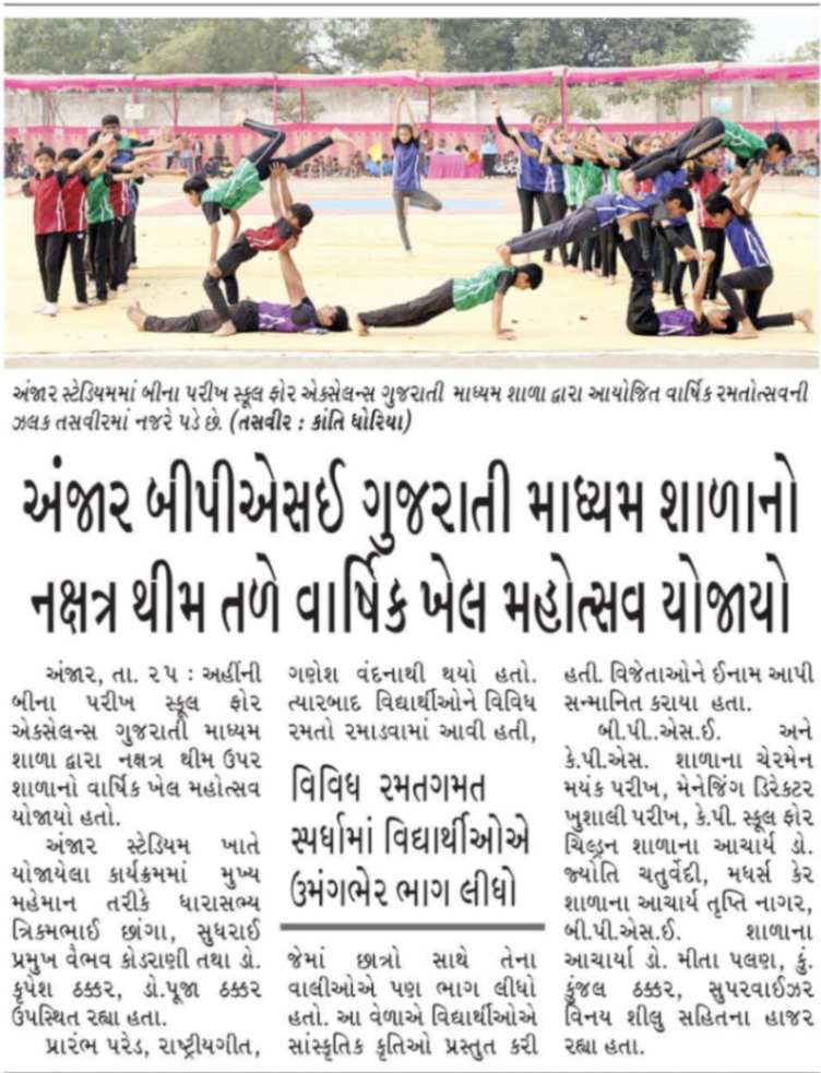 અંજાર બીપીએસઈ ગુજરાતી માધ્યમ શાળાનો નક્ષત્ર થીમ તળે વાર્ષિક ખેલ મહોત્સવ યોજાયો